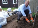 So where are we now – October 2019 – well with the great effort we have rotavated, sifted and even planted a small area – Here’s the first plant being planted!